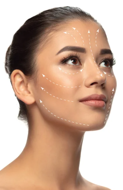 Nasolabiale linjer, små linjer, marionette linjer, hake, kinnbein, kjevelinje