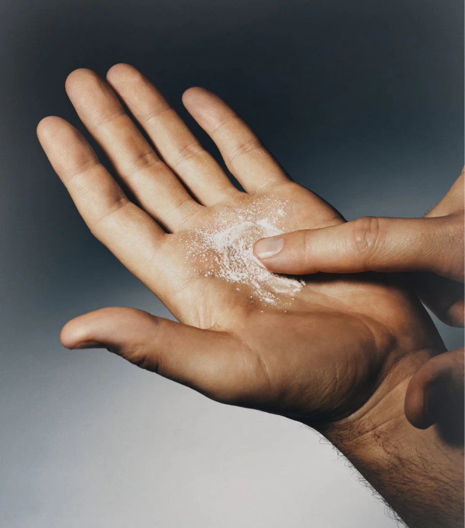 - Massér inn på fuktet hud med sirkulære bevegelser, eller miks pulveret i hånden med lunkent vant før du massérer inn.